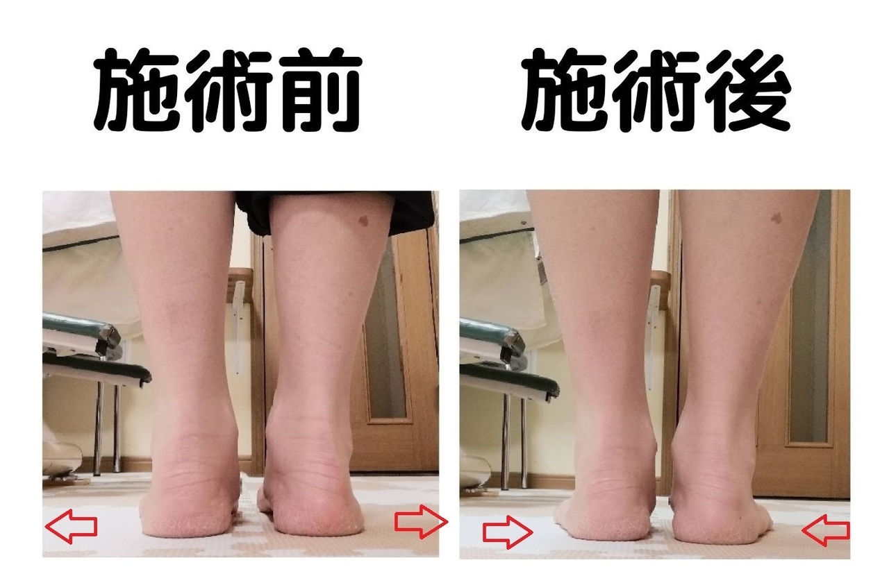 施術後は、かかとが自然に中心に寄り、
